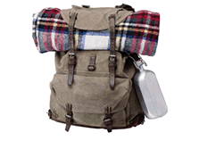 Contoured padded shoulder straps and webbing waist belt distribute the load